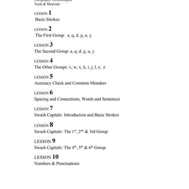Build strong letterforms, understand spacing and rhythm, and develop a refined hand — starting from basic strokes to complete words and compositions.